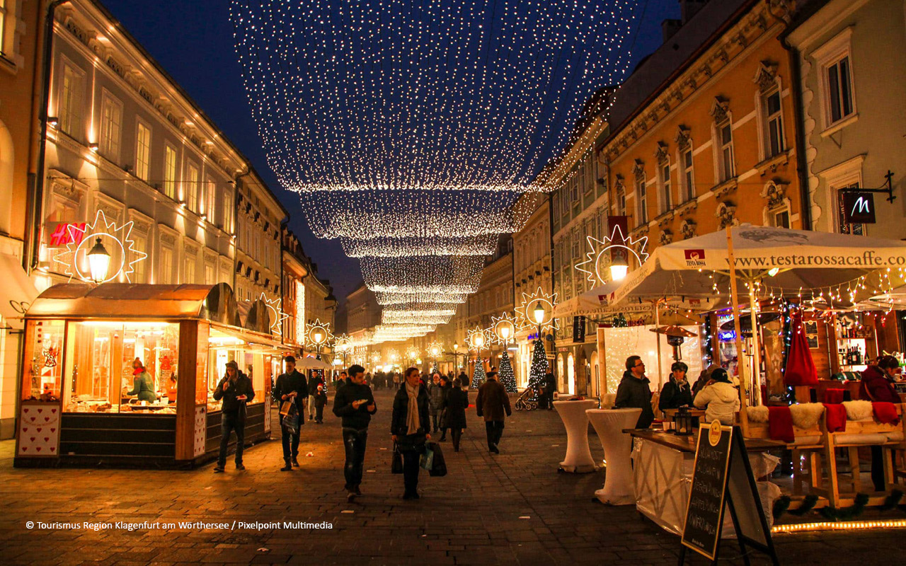 Erleben Sie magische Adventstage und entdecken Sie die stimmungsvollen Christkindlmärkte in Klagenfurt, Villach und Velden! Inmitten vorweihnachtlicher Beleuchtung und duftender Marktstände erwarten Sie liebevoll gestaltete Geschenkideen, heißer Tee, Glühwein und Punsch sowie kulinarische Köstlichkeiten, die für die ganze Familie etwas Besonderes bieten.