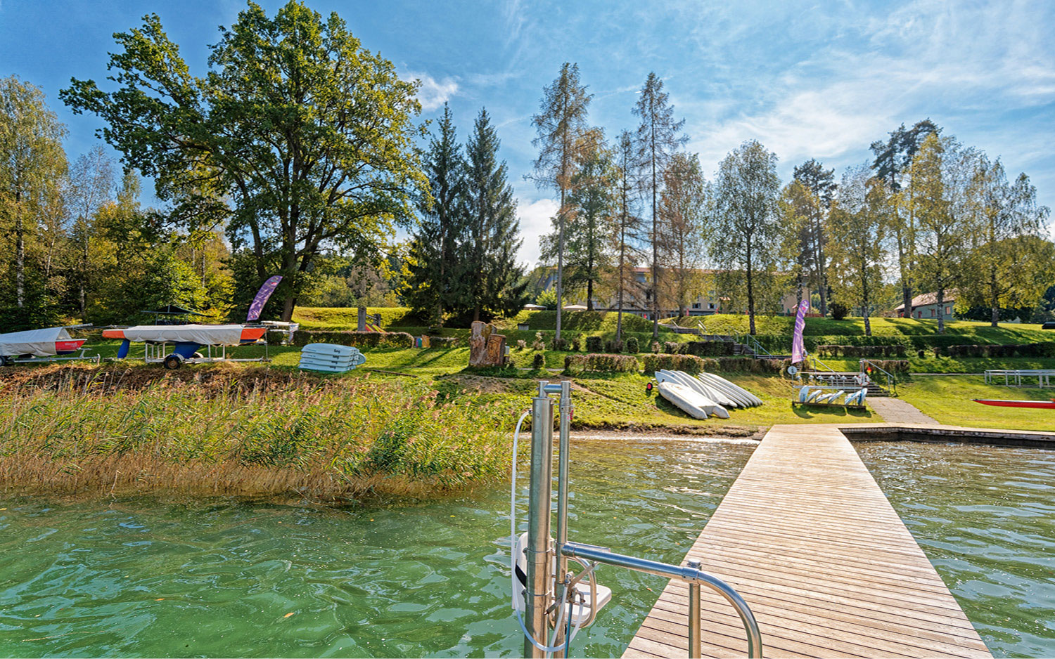 Situated directly on the shores of Lake Wörthersee, the Youth and Family Hostel Cap Wörth offers ideal conditions for varied and exciting school sports weeks. With its private bathing beach, spacious park grounds, sports facilities, indoor swimming pool, and modern common rooms, the hostel has something for every group. The lively Velden lakeside promenade is only a few minutes’ walk away and invites you to explore in the evenings.
