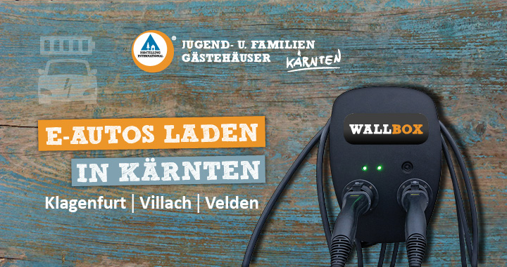 Ab sofort stehen unseren Gästen an den Standorten der Jugend- und Familiengästehäuser in Kärnten Ladestationen für Elektroautos zur Verfügung. Dank der installierten Wallbox können zwei Elektroautos gleichzeitig (gegen Gebühr) geladen werden. Weitere Informationen erhalten Sie an unserer Rezeption.