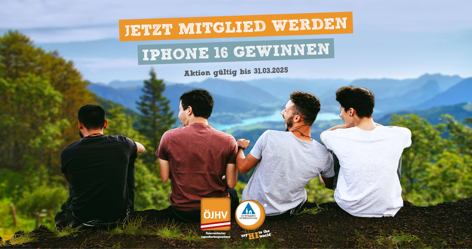 Werde jetzt Mitglied bei der Österreichischen Jugendherbergsverband und genieße weltweite Vorteile in unseren HI Hostels! Alle, die ihre Mitgliedschaft zwischen dem 1. November 2024 und dem 31. März 2025 abschließen, nehmen automatisch an der Verlosung eines iPhone 16 teil.